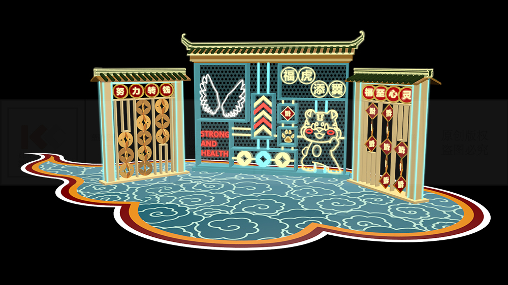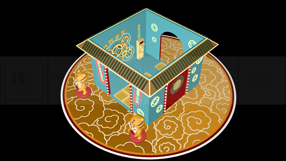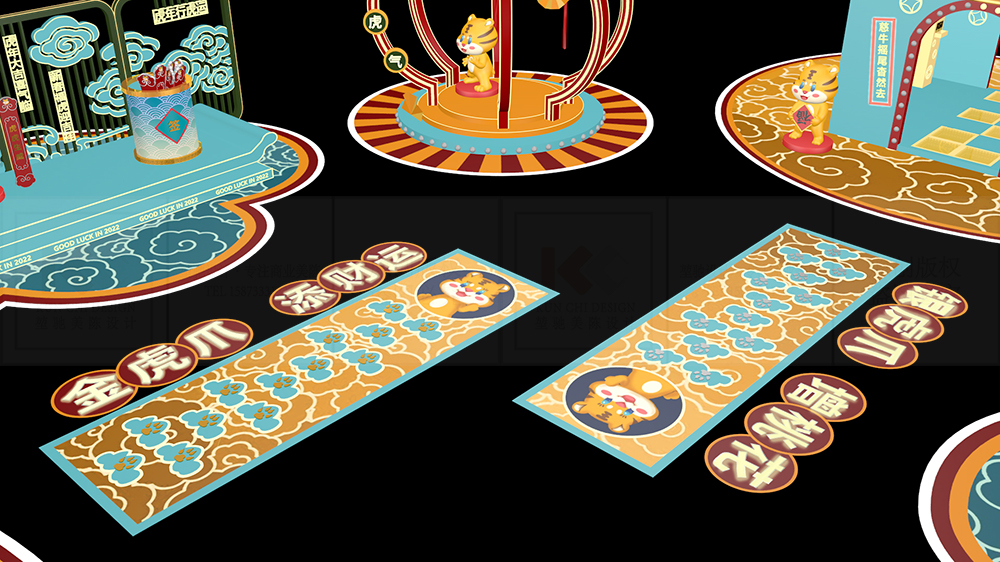 美陳設(shè)計(jì)的配色可以有很多種,但圖片中的美陳設(shè)計(jì)取自各個面值的紙幣,將傳統(tǒng)色彩融合到新年祈福的主題美陳,打造新流行